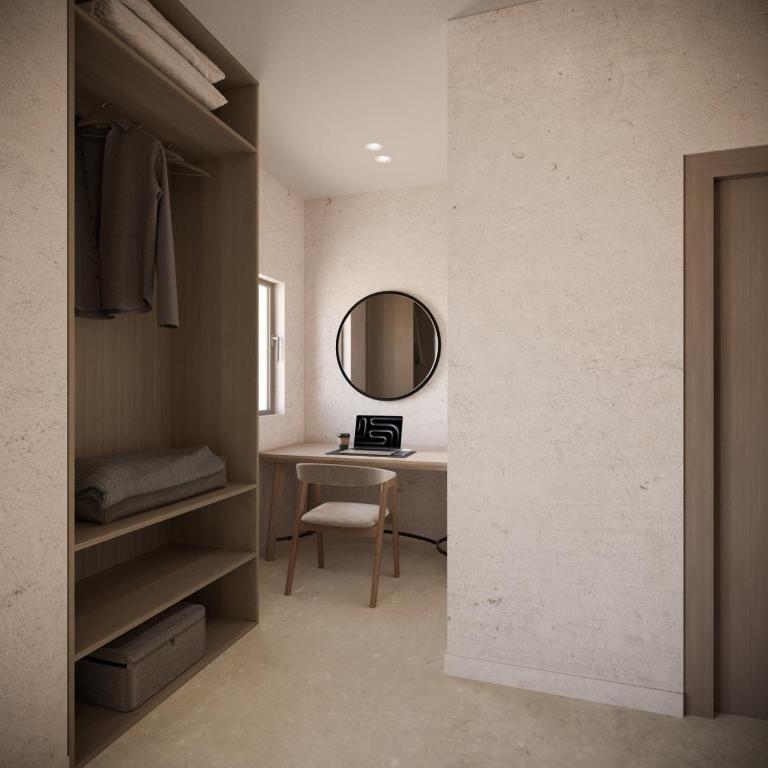 The spacious layout includes a beautifully arranged bedroom with premium bedding, a stylish living area perfect for unwinding, and thoughtfully curated décor that adds a touch of modern sophistication. Soft lighting, elegant textures, and high-quality materials enhance the sense of serenity throughout the space.